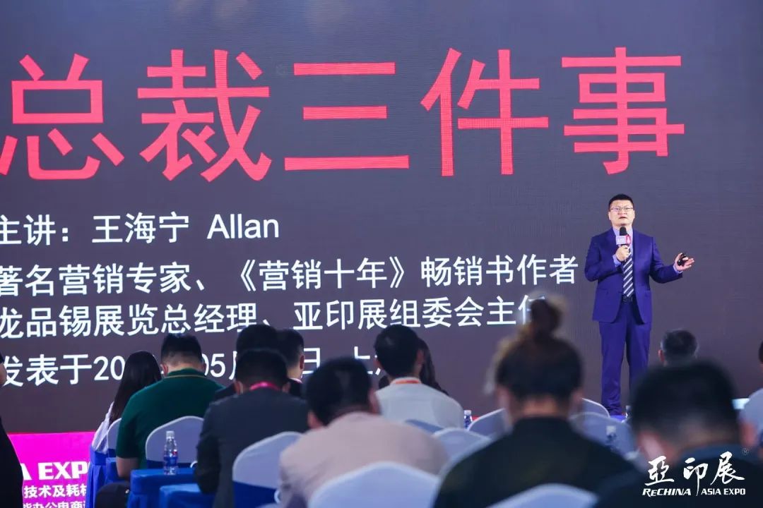 ▲著名營銷專家、龍品錫展覽總經(jīng)理、亞印展組委會(huì)主任王海寧致歡迎辭,并發(fā)表了題為“盈利企業(yè)總裁三件事”的主題演講。