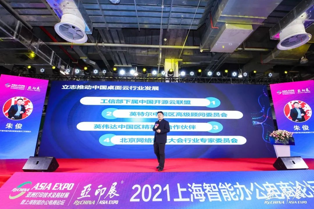 ▲工信部下屬中國開源云聯(lián)盟桌面云工作組組長朱俊發(fā)表題為“辦公產(chǎn)業(yè)升級與云桌面”的主題演講。