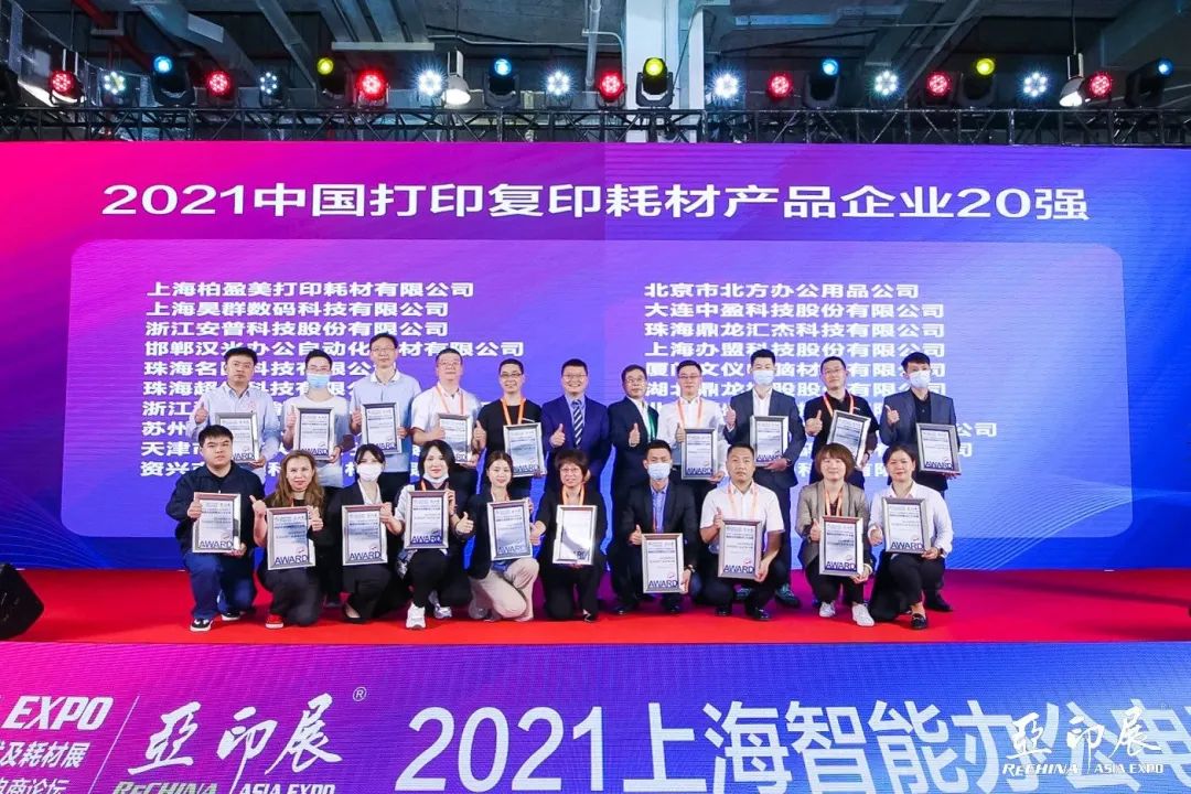 亞印展組委會(huì)在2021上海智能辦公電商論壇期間,發(fā)布了“2021中國打印復(fù)印耗材成品企業(yè)20強(qiáng)”榜單,對優(yōu)秀企業(yè)進(jìn)行了公開表彰。